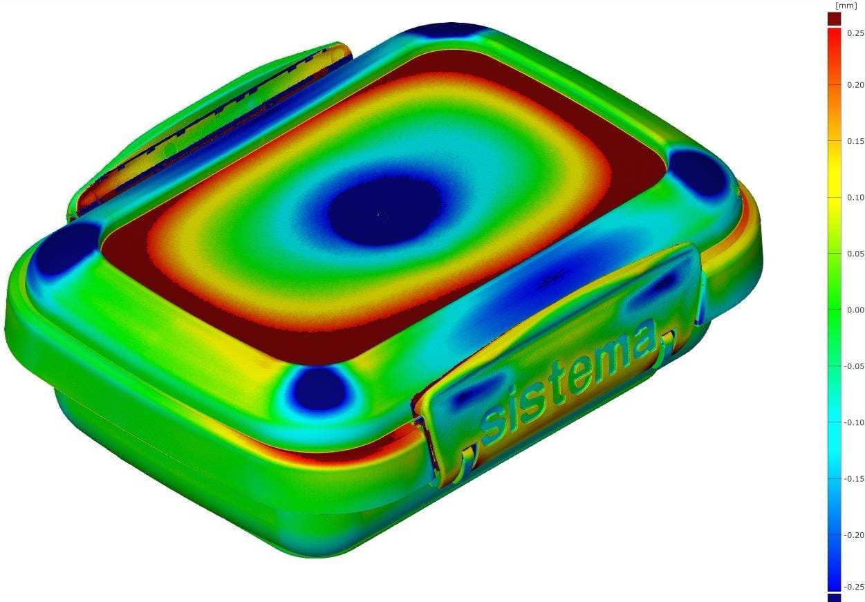 Na het aanmaken van het CAD model vergelijken we het met de originele scan. Een kleurenplot visualiseert de afwijkingen tussen beiden, zodat je in één oogopslag ziet waar eventuele verschillen zitten. Aanpassingen zijn dan nog steeds mogelijk om discrepanties te elimineren. We werken hierbij zoveel mogelijk volgens algemene design principes zoals loodrechtheid en concentriciteit.