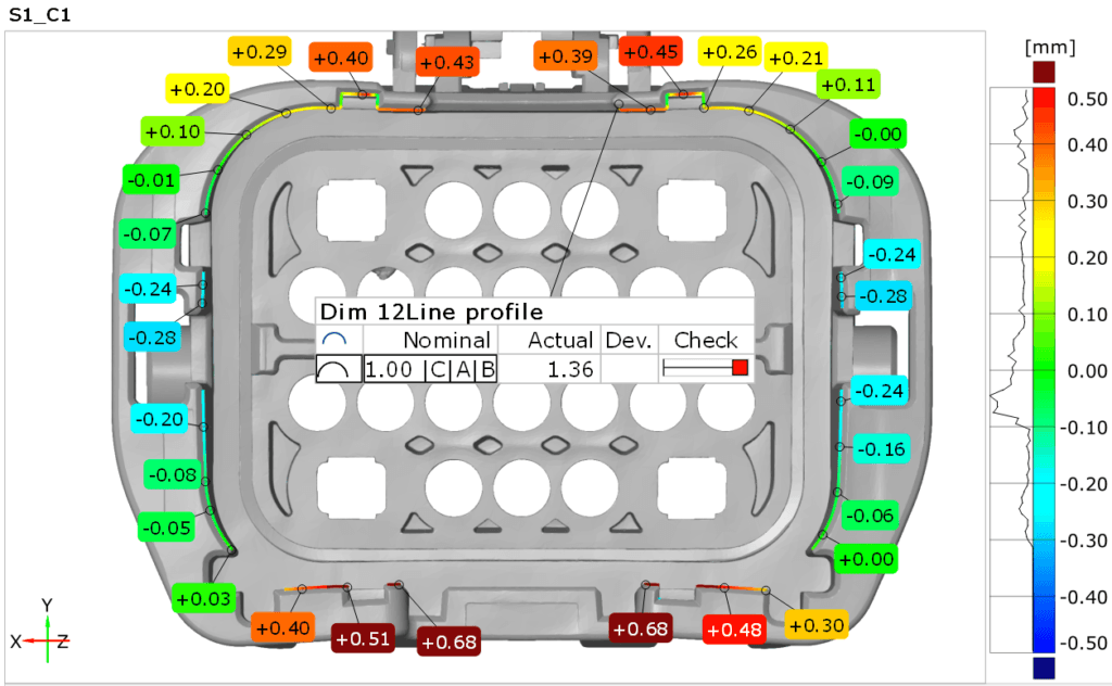 Wanneer een product nog steel safe gehouden wordt, komt het moment dat er gericht aangepast moet worden. Dankzij slimme scans en kleurenplots gebeurt dit vandaag veel doelgerichter. CAD en scan worden gecombineerd, waardoor afwijkingen visueel zichtbaar worden. Het trimmen van surfaces verloopt daardoor sneller, nauwkeuriger en met minder risico’s. Het resultaat: minder giswerk, meer zekerheid en een aanzienlijke besparing in tijd en kosten.